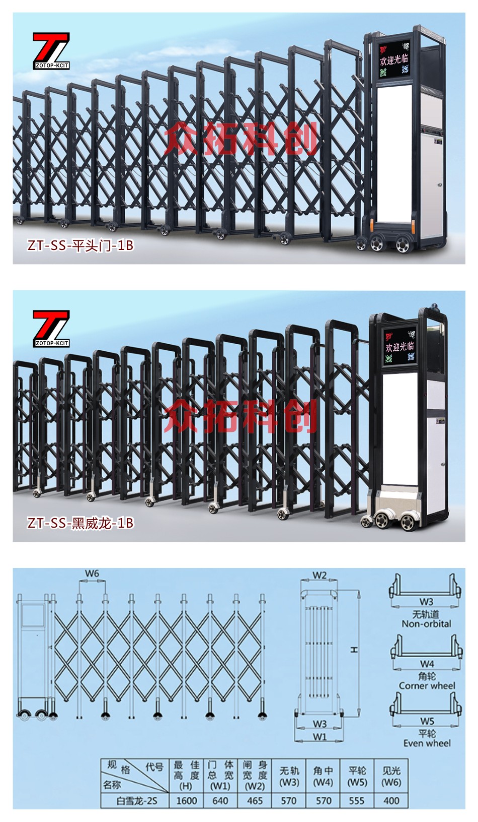 伸缩门ZT-SS-白雪龙、平头门、黑威龙