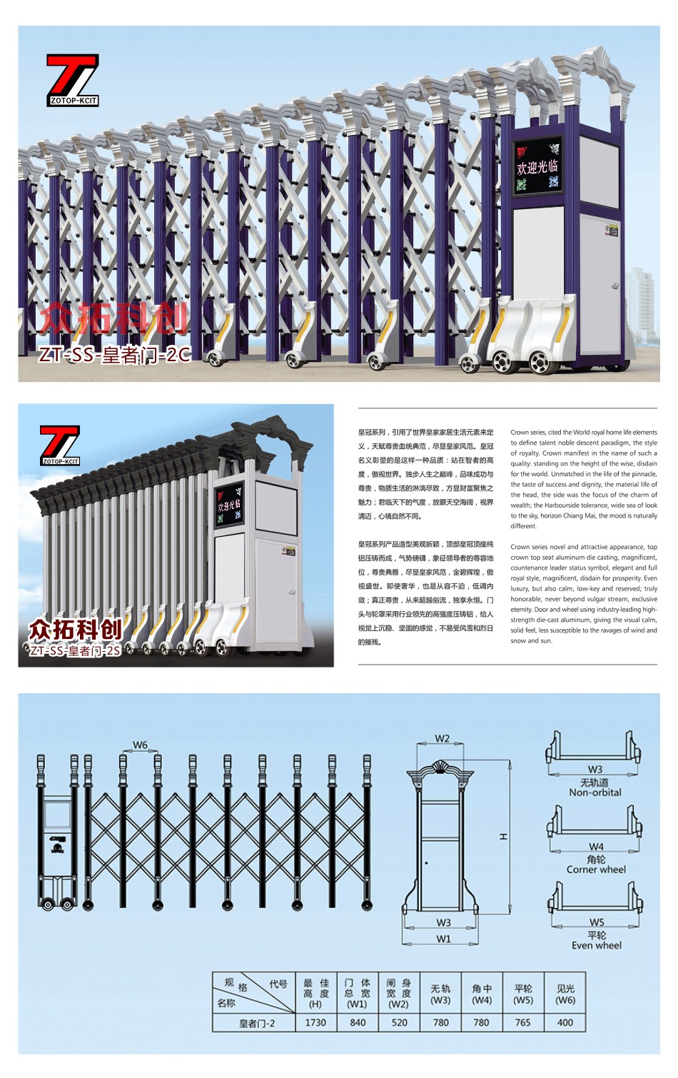 伸缩门ZT-SS-皇者门-2R、2C、2S