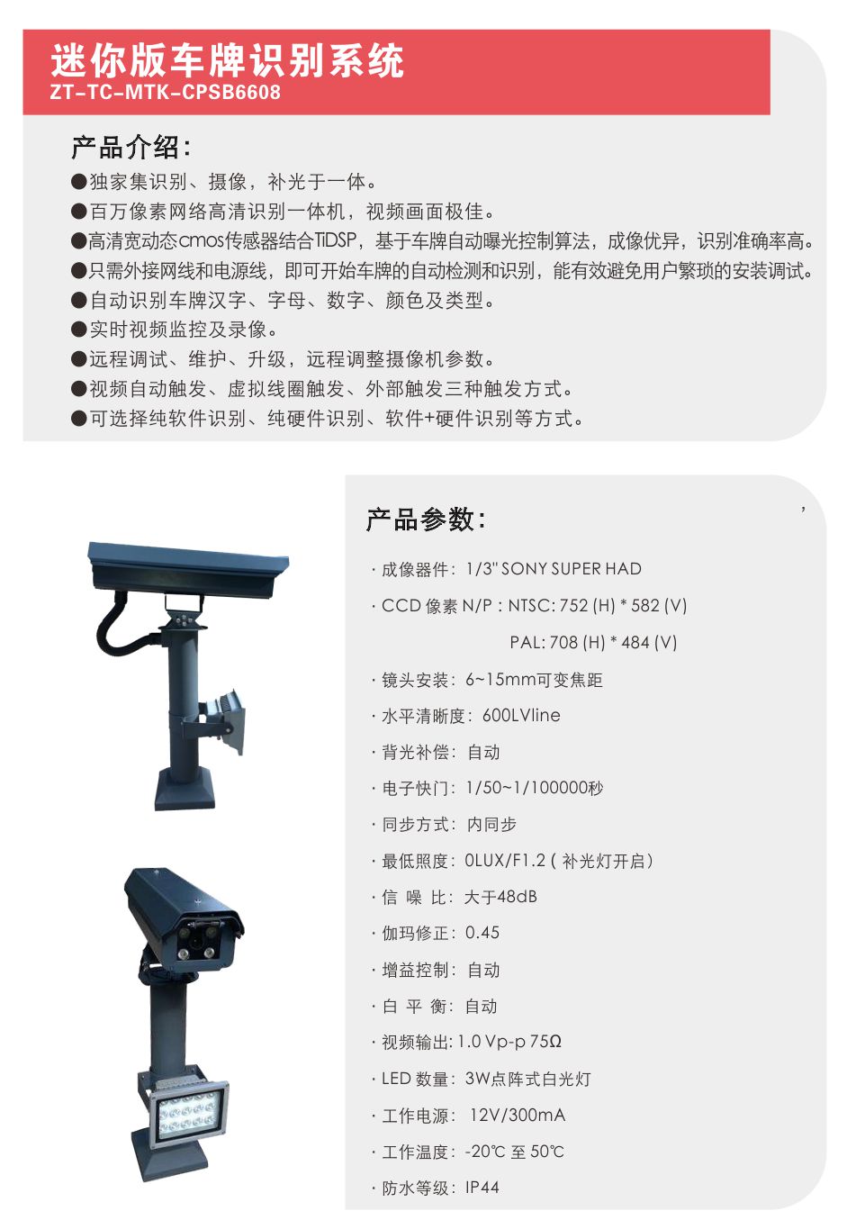 迷你版车牌识别系统ZT-TC-MTK-CPSB6608